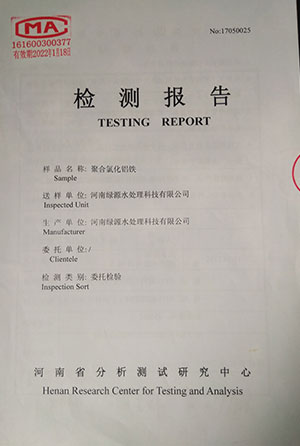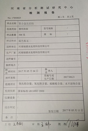 聚合氯化鋁鐵檢測報告